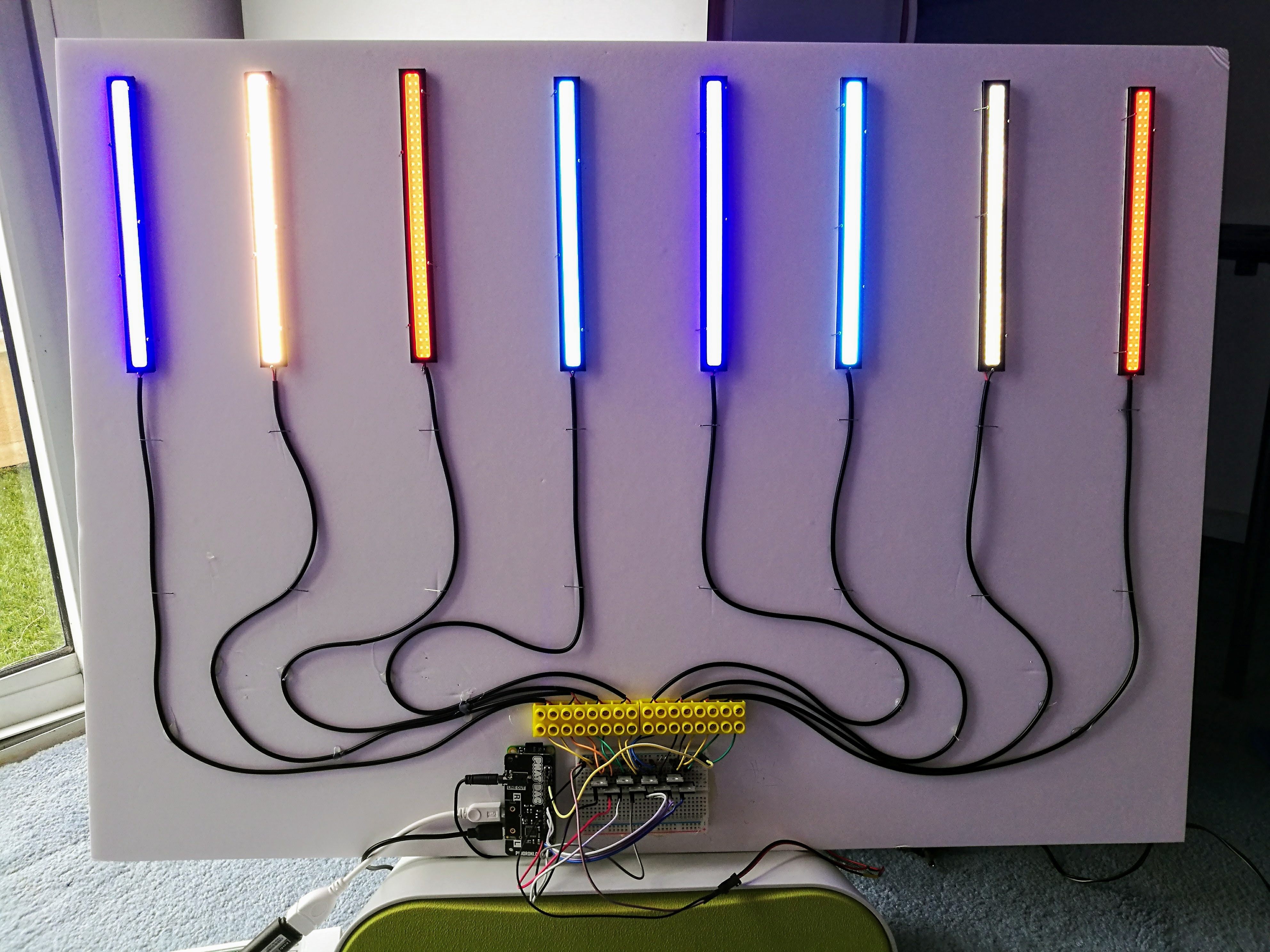 In the end, for my Tesla Sound & Light show I decided to keep everything portable. I wanted a single board with everything on it - that I could easily carry around. To do this, it would be easier to use bright, 12 volt LEDs instead of dangerous and complicated mains voltage.