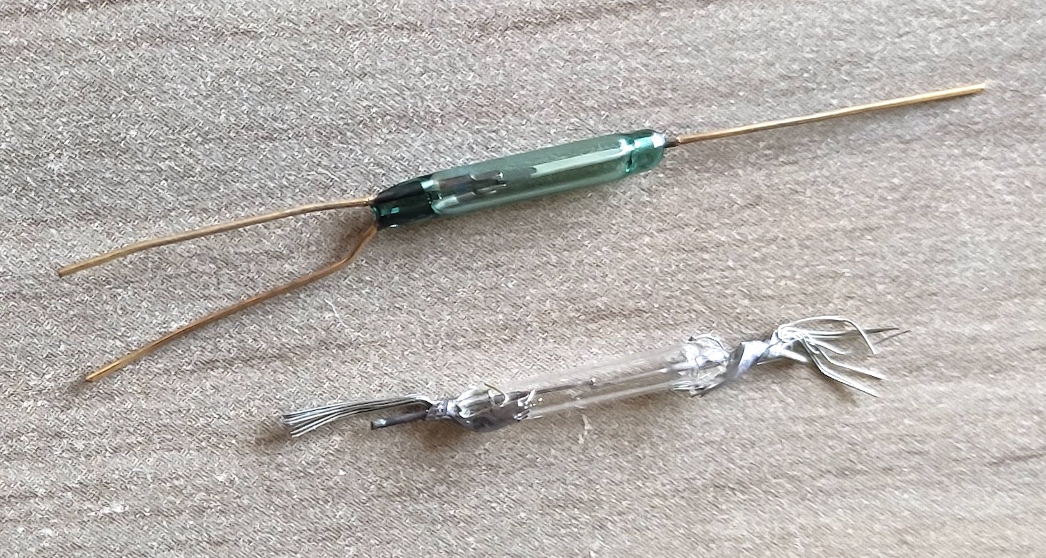 I replaced the glass reed inside its plastic housing with a NC version. (The green one in the photos offers NC or NO, depending on your need.)