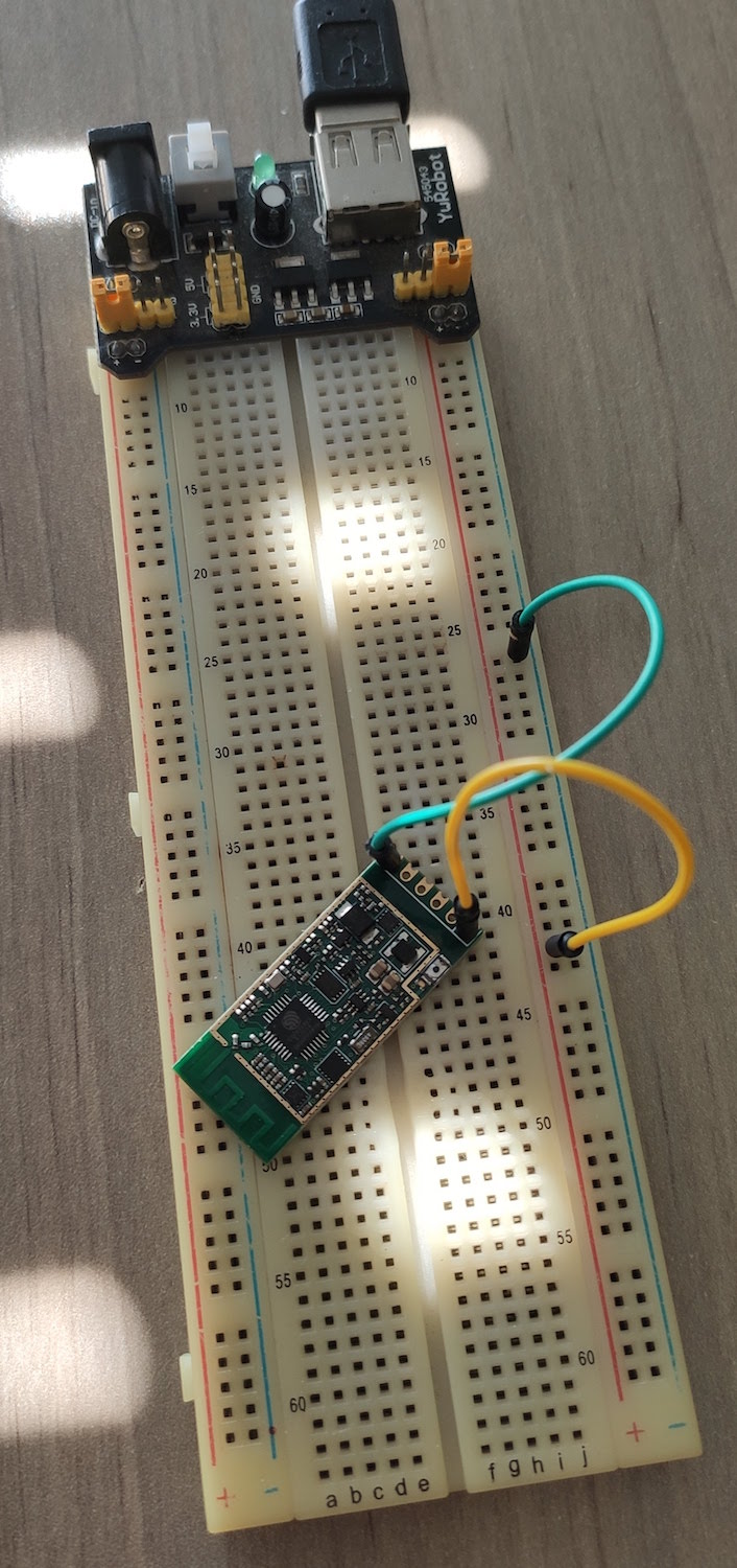 The first thing, of course, was to set it up. I took out a breadboard and impaled the Cricket on a 3.3v line with a couple of header pins. Then I surfed over to their Dev. Guide.