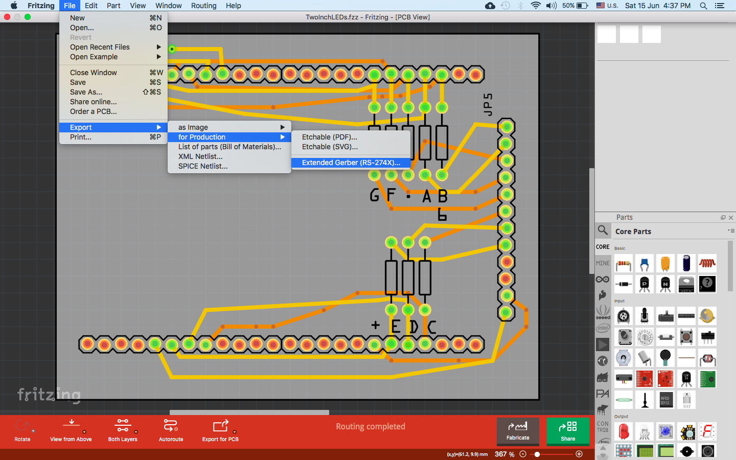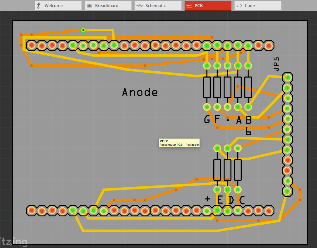 Skipping over to Fritzing PCB design, my board ended up looking like this: