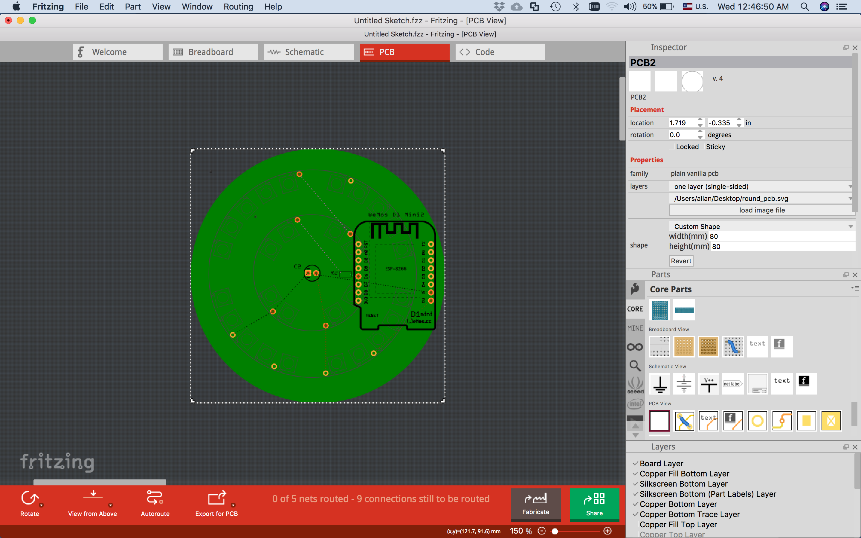 I was surprised by how easy it was to create a circular PCB in Fritzing.