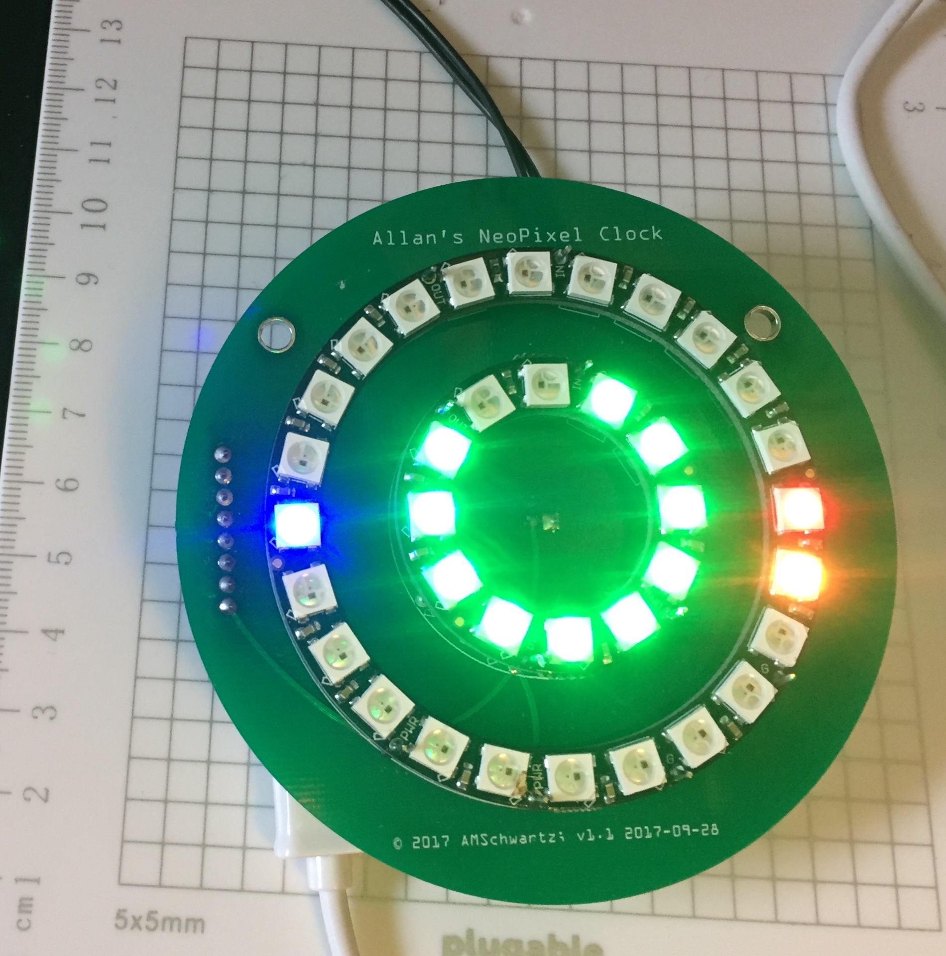 Hours are indicated on the inner pixel ring in Green. I also thought about changing this color at sunrise and sunset, but I haven’t implemented this yet.