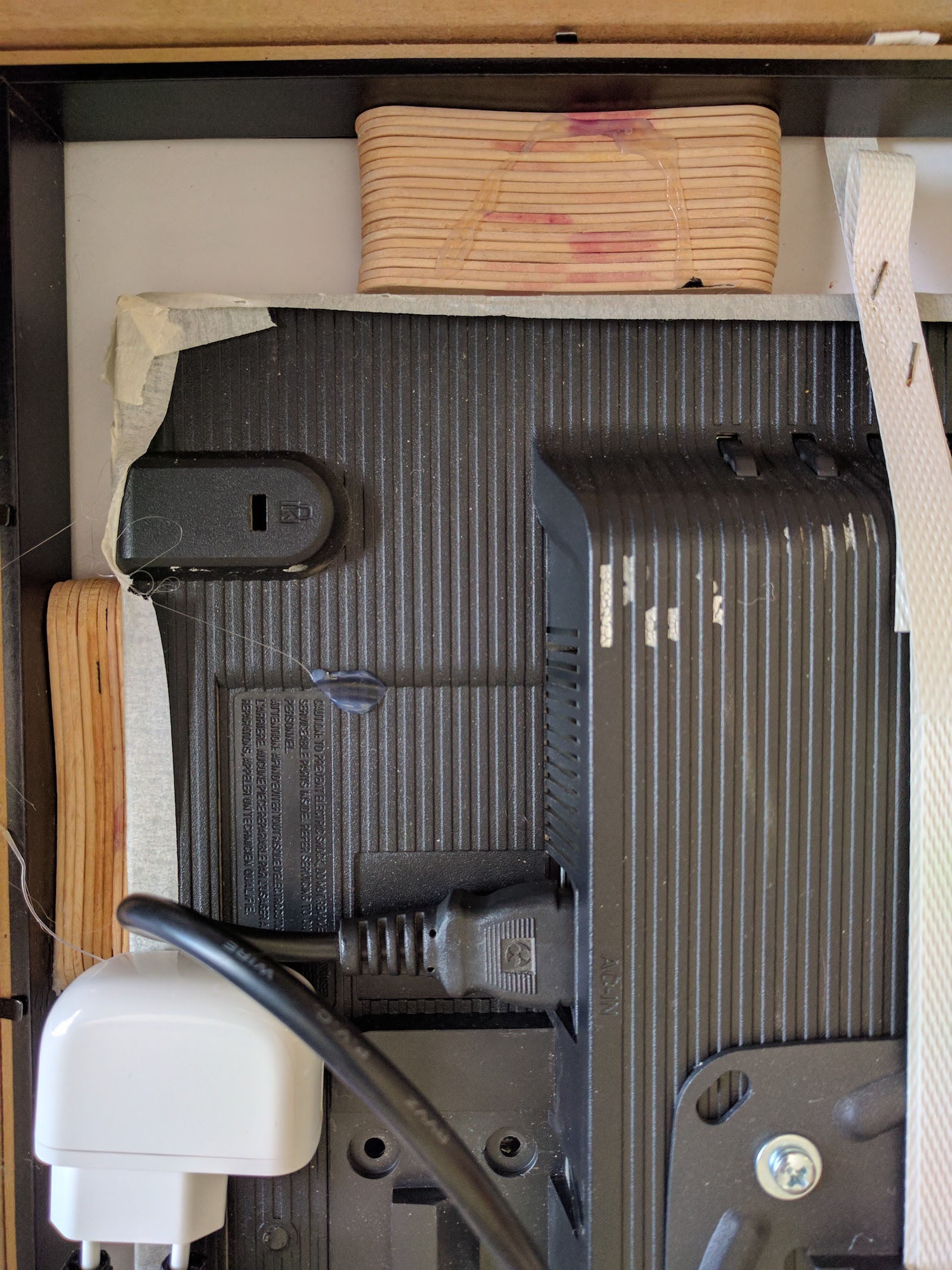 When you push the internal frame firmly in its place, the strapping band will push the screen flush against the glass. The bottom and sides of the screen will be held in place by the popsicle sticks.