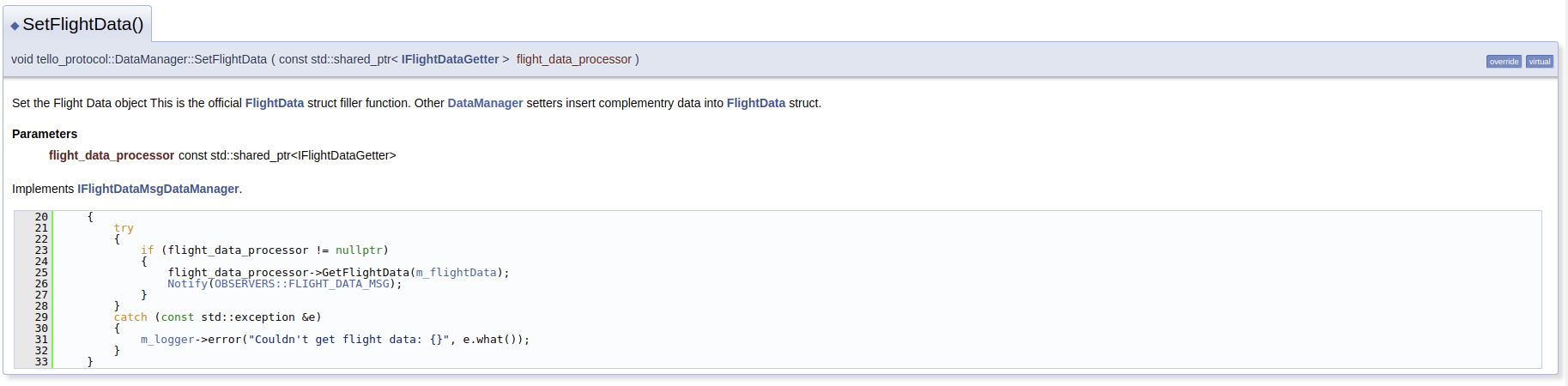 It follows Doxygen documentation syntax.