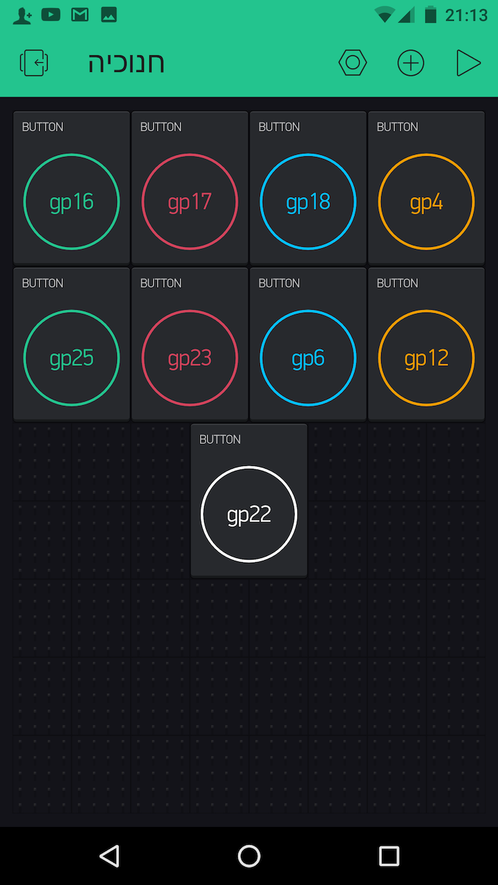 Blynk should then connect to their company servers and allow you to access the Menorah's lights through your phone app. Just press the buttons and watch your lights come on! (As long as you're connected to the internet, you can do this from anywhere in the world!)
