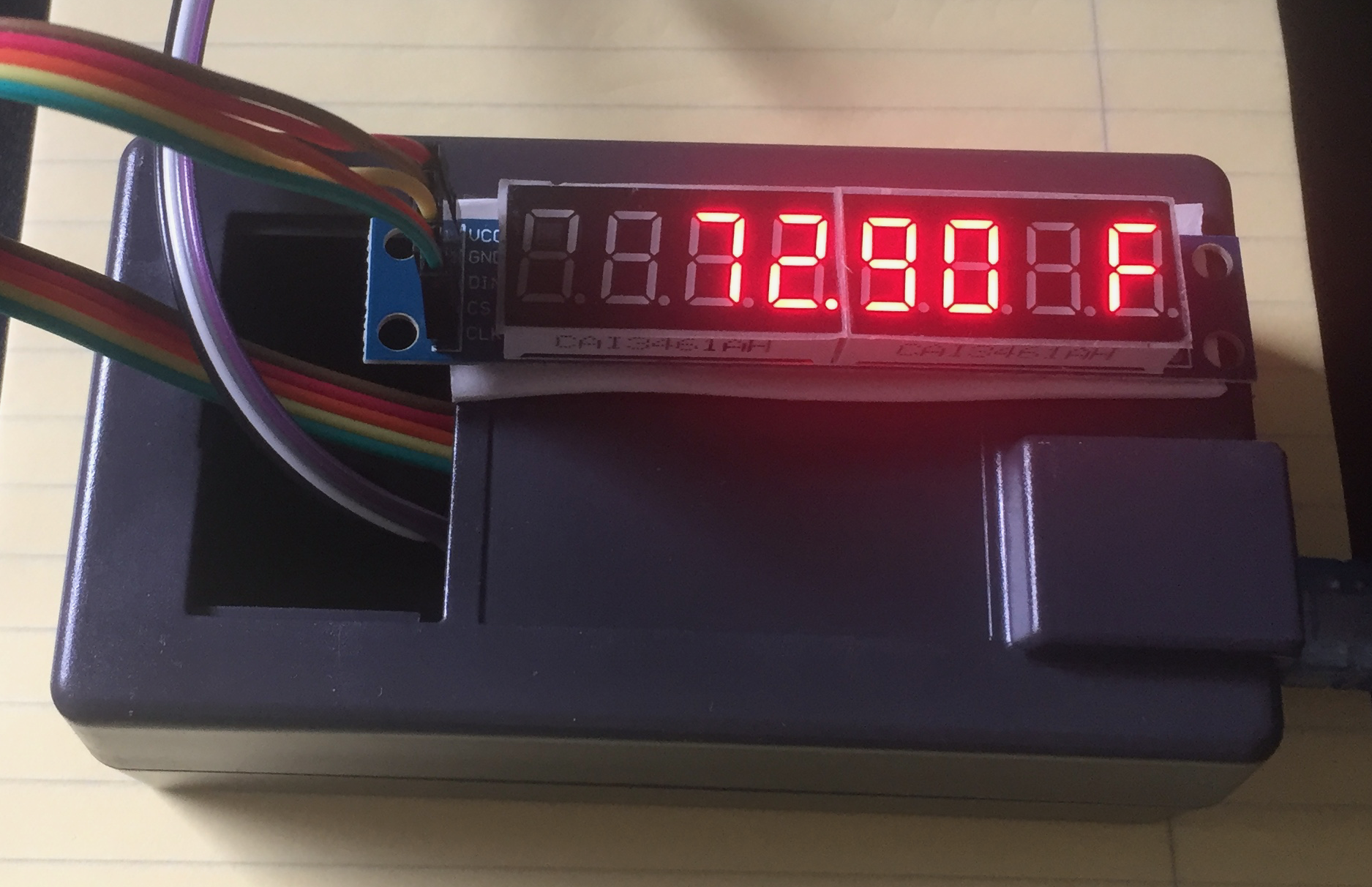 Here is my finished project box, with the display attached to outside of the enclosure with double-sided tape: