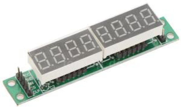 Instead, lets do this the easy way. A typical MAX7219 module comprised of a single MAX7219 chip and eight 7-segment displays. It looks like this: