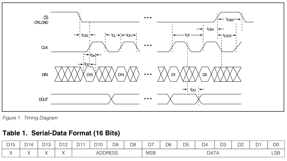 The Timing Diagram above shows all sorts of timing constraints – however, not to worry, the shiftOut() function is fully compliant to those timing constraints. Also, the Timing Diagram specifies that the first bit transferred is D15, then D14, … finally D1 and D0. This is accomplished with the keyword MSBFIRST in the call to shiftOut().