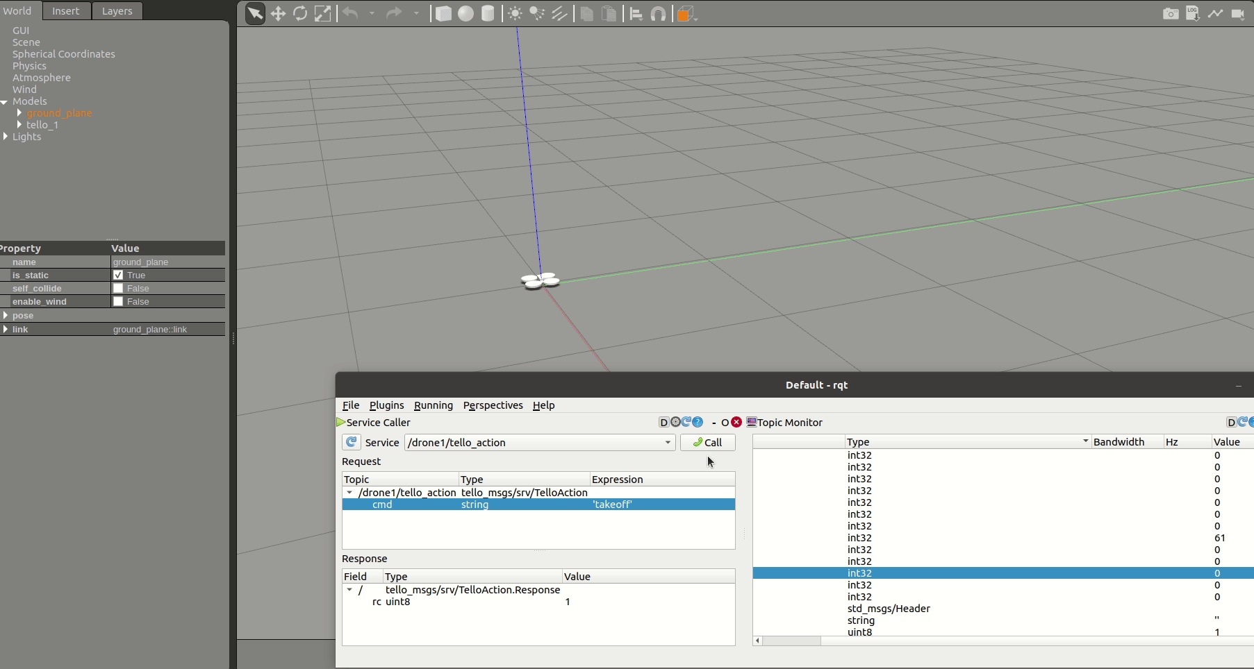 And voila! a GAZEBO simulation pops, with a drone object inside it!