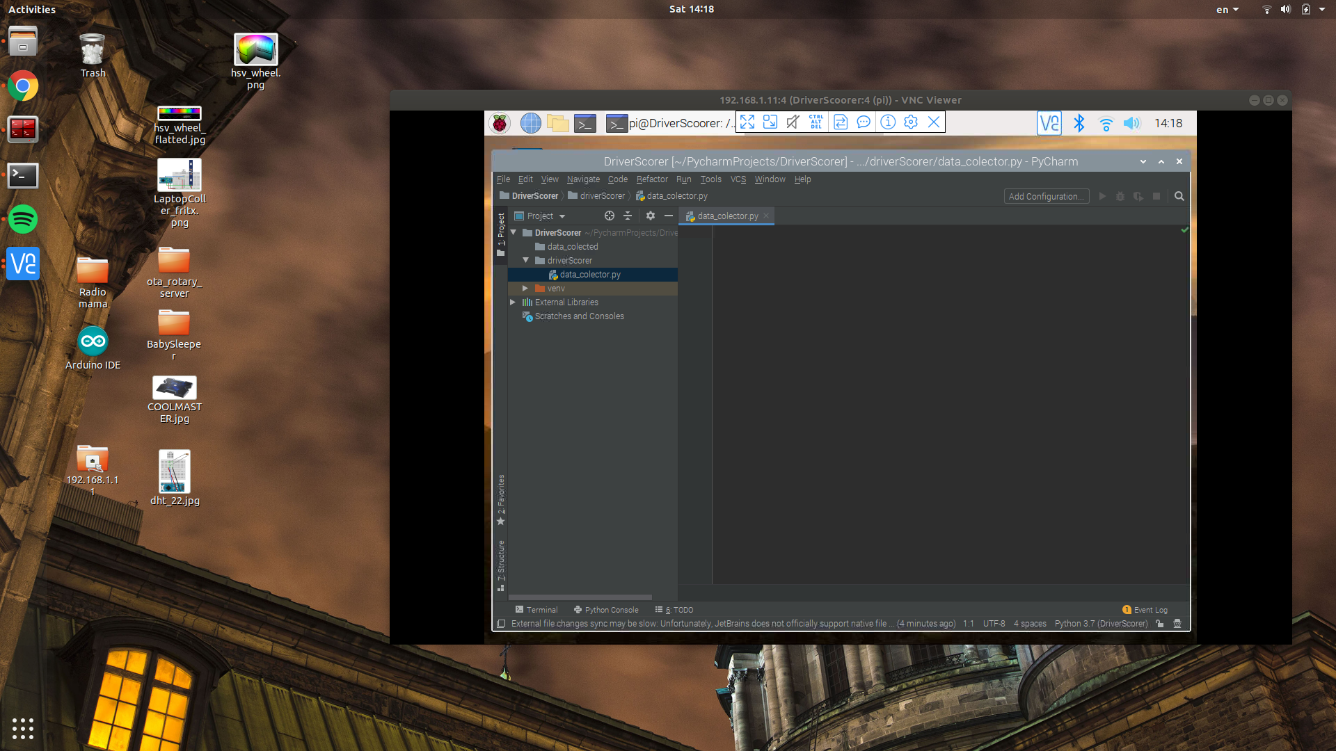 Now it is possible to work on Pycharm, that is intalled on the RPI, But view the window through graphical SSH on the laptop. This is the most convenient way to develop the GUI, and working with the IMU sensor, because it all happens on the RPI. Later on, after gathering all driving data, EDA will happen on the laptop.