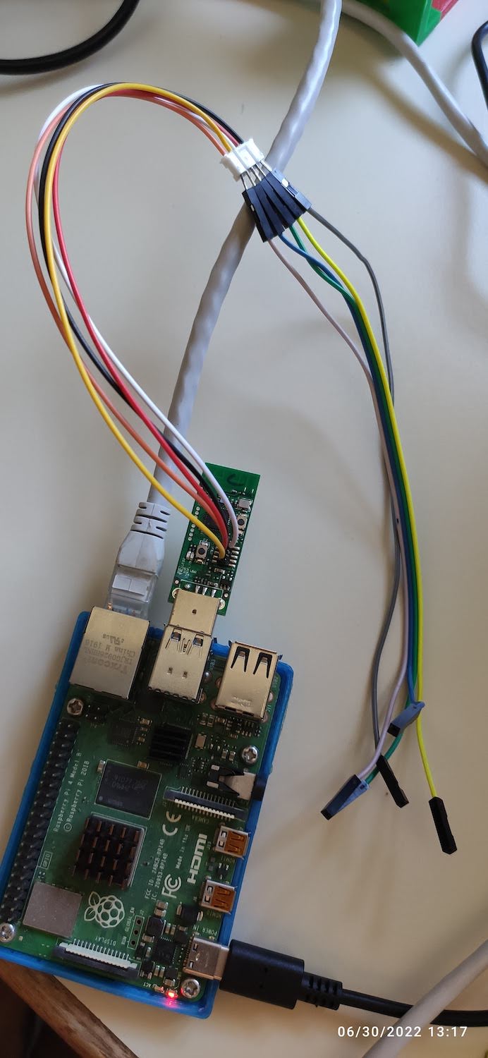 It's imperative to get the wiring right, so in my case, I had to pay very close attention to the fact the Dupont wires were a different colour from the JST wires. With a continuity meter I also checked that the wires were connected ONLY to the correct pins on the dongle. (The pins are so small, it's easy to bridge between them). I also had to make sure I was looking at my RasPi pins the right way up.