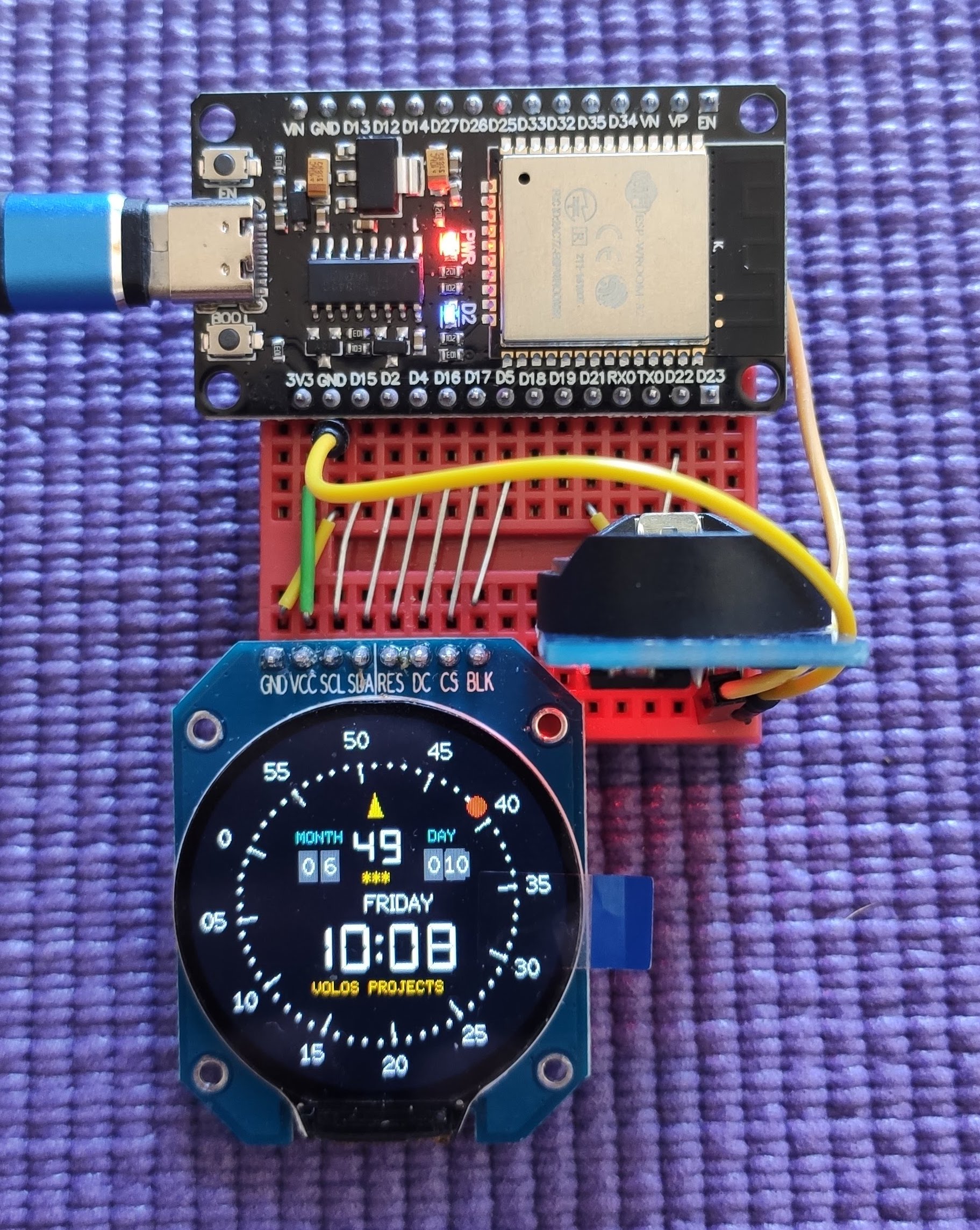 Now that I was successfully flashing my ESP, it was time to get back to the Volos watch. I opened up VolosProject's video and went looking for the wiring diagram. First I searched at his GitHub page but it only contained the code. So then I just looked at his amazing video. It was pretty clear where each wire should go, so I wired mine the same.