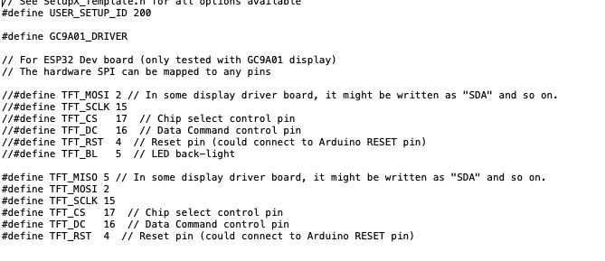 Always looking to do it the hard way, I then tried to figure out with pins to change. Which of them is MISO? - it's not mentioned there at all. It does say, "In some display driver board, (sic) it might be written as "SDA" and so on." - but to the amateur this doesn't help me very much.
