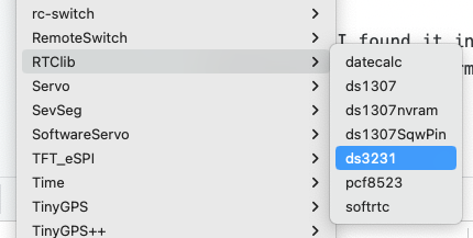 My Volos Watch was showing the time it got from the RTC, so I needed to set the latter's time. I'd had experience before of the DS3231 Real Time Clock (RTC). In the past I'd found some obscure library to do this, but as usual, it wasn't simple; it required manually setting the time and date, and predicting what time it would be when the sketch had finished uploading! I knew there must be an easier way.